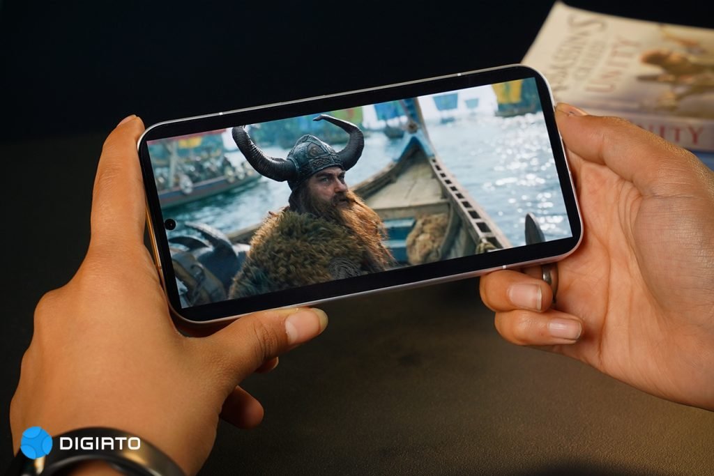 از آن‌جا که پنل پشتی و فریم، هر دو خریدی مات دارند، گوشی ذاتاً کمی لیز است؛ بااین‌حال خوشحالیم که شیشه‌ مات پشت در بیشتر مواقع در برابر لک و اثر انگشت تمیز می‌ماند. دست‌کم در رنگ‌بندی سفیدی که من در دیجیاتو بررسی کردن کردم، چربی نوک انگشت‌ها چندان به چشم نمی‌آید.