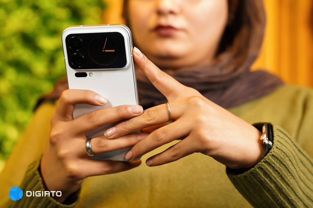 درباره‌ی شیشه‌ پشت یا نوع آلومینیوم فریم اشاره‌ای نشده، اما از منظر تجربه‌ یوزری، دستگاه در دست محکم و پریمیوم حس می‌شود. با کمی جست‌وجو مشخص شد که پنل پشتی از فایبرگلاس ساخته شده یعنی دقیقا مشابه با گوشی Xiaomi 15 Ultra. فریم جانبی تخت است و با فرمی نرم به شیشه‌ جلو و پشت می‌رسد.