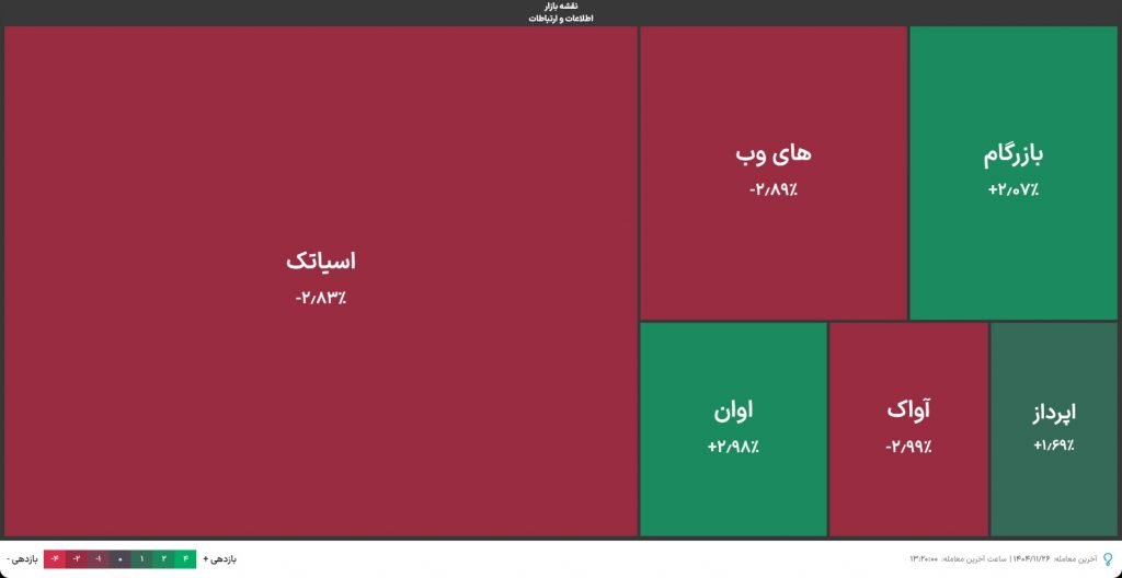 نیز در گروه اطلاعات و ارتباطات، تنها نماد‌های بازرگام، اوان و اپرداز مثبت معامله شدند.