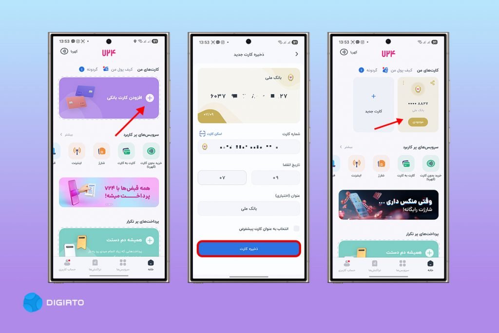 آموزش گام‌به‌گام ثبت کارت با برنامه ۷۲۴