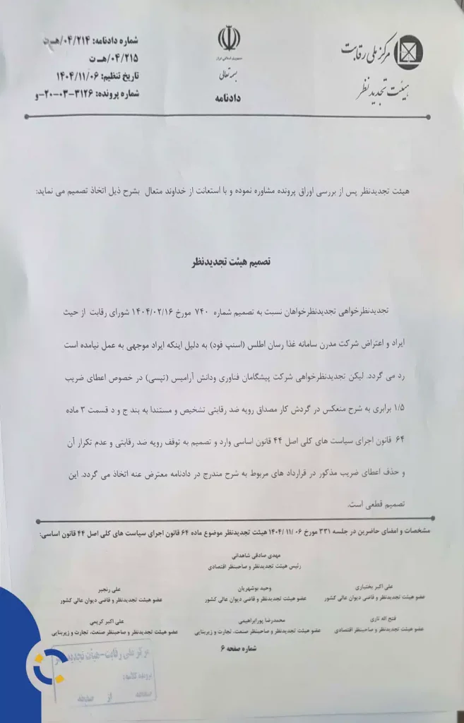 حدود ۱۵ ماه پس از ثبت شکایت اولیه و برگزاری جلسات کارشناسی متعدد، هیئت تجدیدنظر رقابت در آخرین جلسه خود که دوشنبه هفته جاری برگزار شد، رأی شورای رقابت به نفع رقابت آزاد در بازار سفارش آنلاین غذا را تایید و تکمیل کرد. طبق این حکم، اسنپ‌فود ملزم است از هرگونه رفتاری که مانع لاگین یا رشد رقبای دیگر شود، خودداری کند. بنابراین هرگونه شرط همکاری انحصاری با رستوران‌ها و اعمال جریمه برای همکاری با رقبا، از امروز باید متوقف شود.